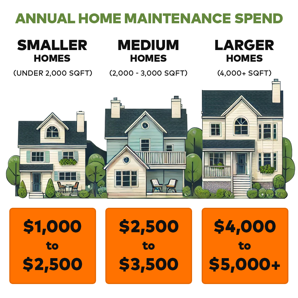 Planning ahead for these costs ensures that your home remains in top shape, helping you avoid unexpected expenses in the future. Make sure to budget accordingly based on your home size to stay prepared and maintain your investment.